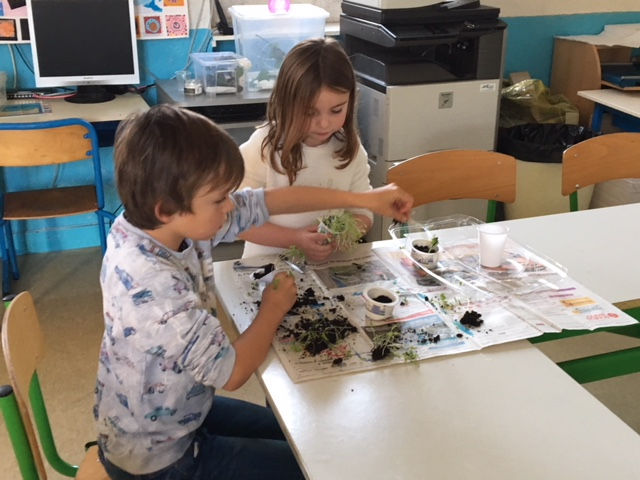 Des expériences leur demandant d'être observateur, de savoir travailler en groupe mais également de se responsabiliser en arrosant et en rempotant leurs plants. Nous verrons dans quelques mois si les CP CE1 ont la main verte :)